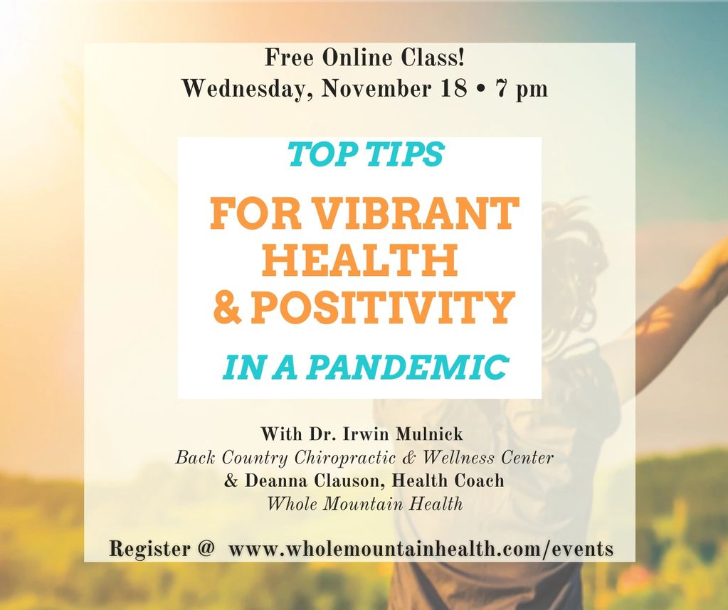 Join Deanna Clauson, FMCHC and Dr. Irwin Mulnick, DC, for a free 45-minute presentation on many things you can do to keep yourself healthy and resilient in challenging times.